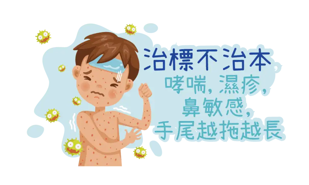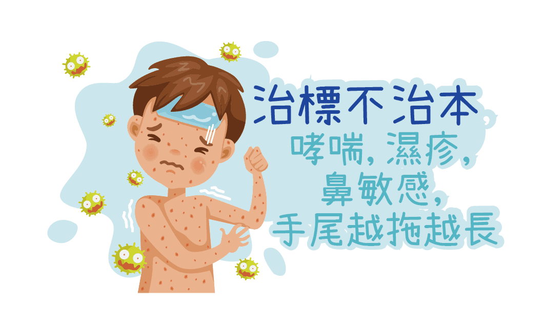 通常遇到過敏症狀.醫生都會處方外用類固醇, 抗組織胺,抗生素或外用免疫系統抑制藥物,但很多時候只發揮出即時舒緩及抑制之效果,並不能斷尾