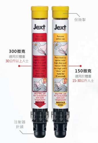 過敏急救筆分為兩種,是按體重而定,30公斤以上人士是使用300微克,而15-30公斤人士使用150微克。注射腎上腺素是為緊急治療過敏性休克的主要方法,俗稱過敏急救筆或救命針,是給不懂使用針筒注射的人士,也可以快捷簡單地進行急救。