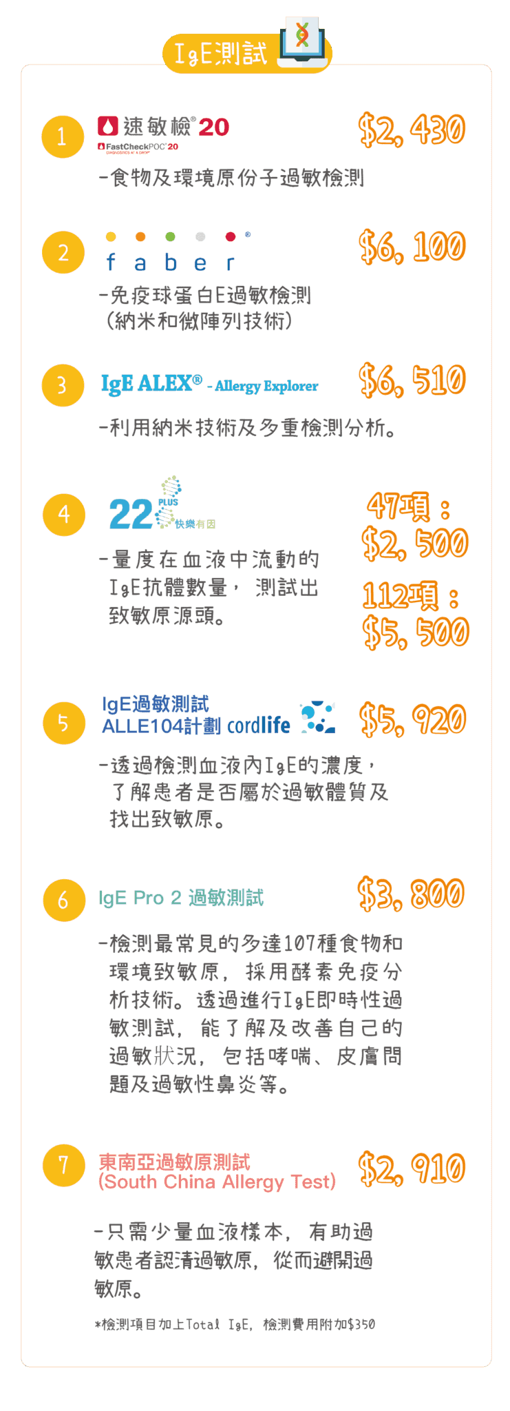 滿6月齡以上已可以檢測,對濕疹患者、食物敏感及鼻敏感人仕尤其適合。