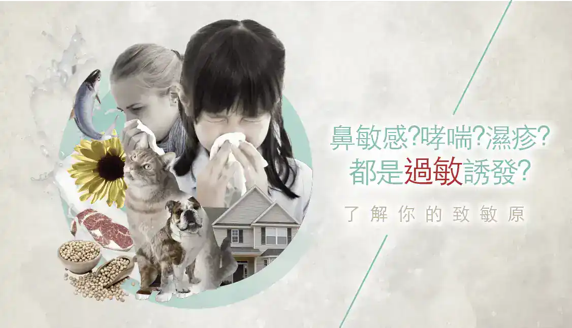 食物敏感、濕疹、鼻敏感、哮喘、蕁麻疹、皮膚敏感、風癩及接觸性皮膚炎均是由致敏原引起的病徵,可以透過ige測試及igg測試找出致敏原。